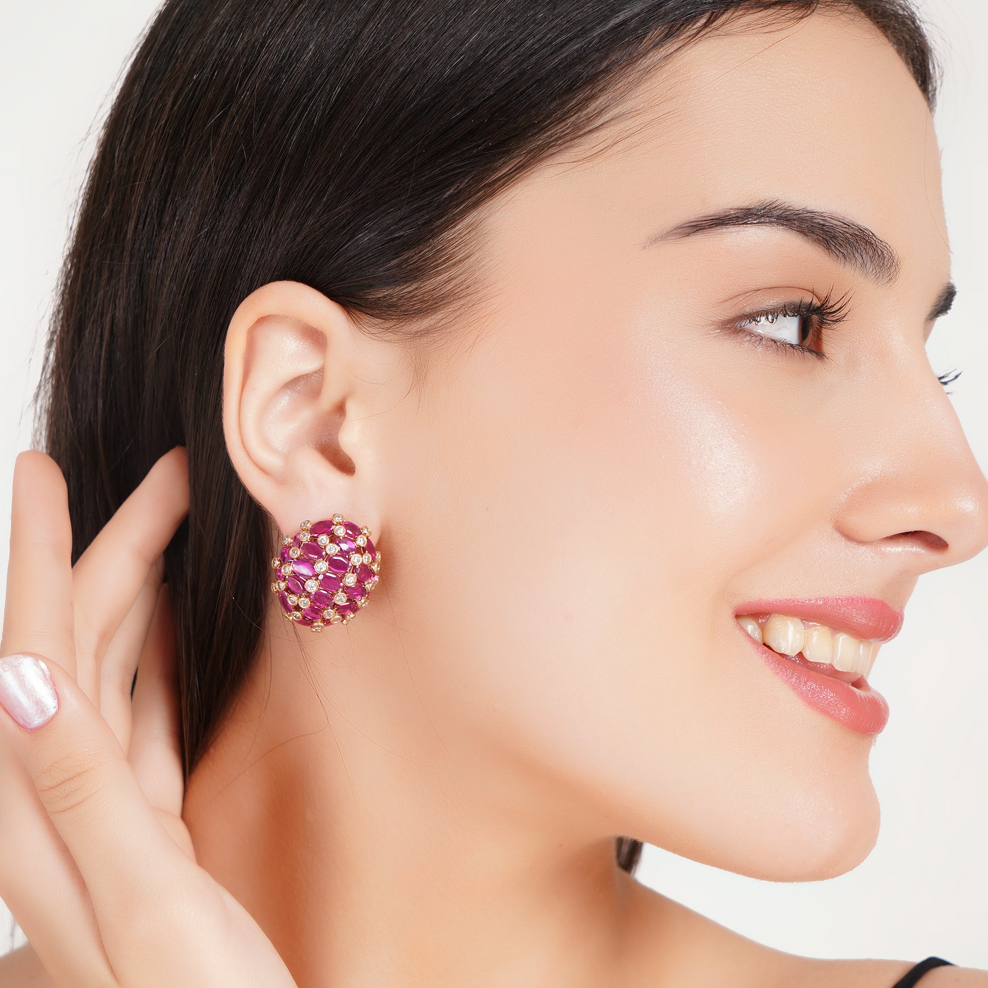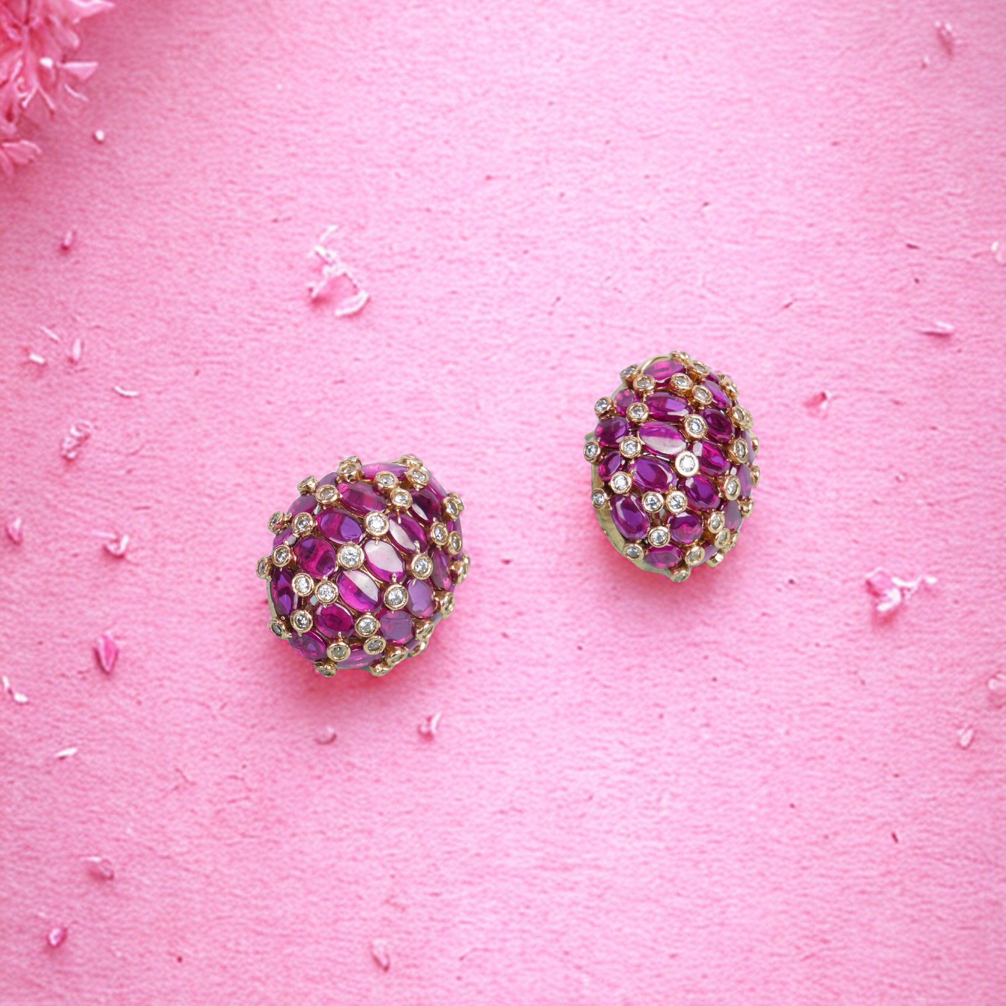 Emerald Green/Pink Dome Stud Earrings