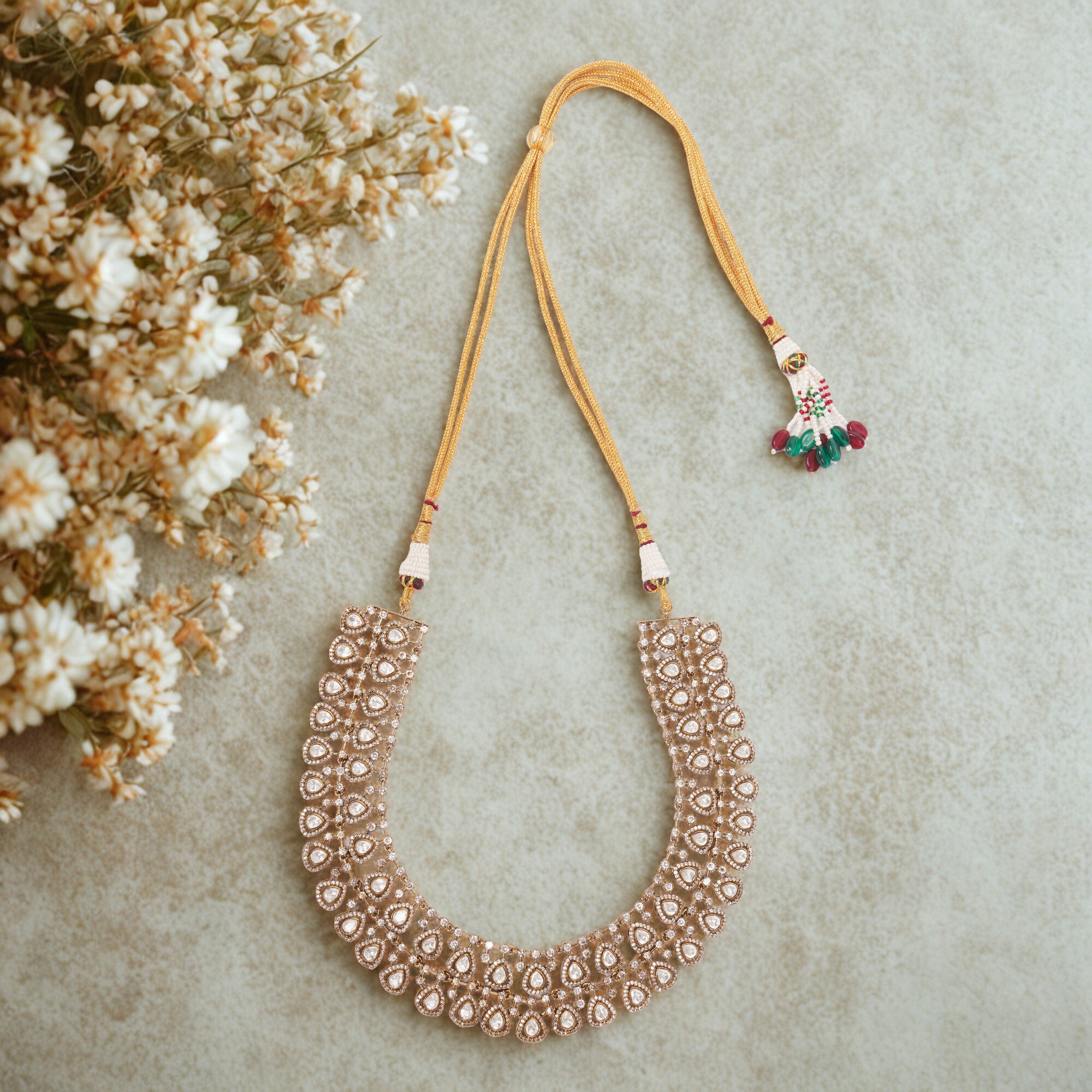 Elevate your elegance with this stunning Moissanite Double Layer Necklace Set, crafted to perfection for the modern woman who loves timeless charm. Featuring intricately placed moissanite stones in a radiant double-layer design, this set captures the brilliance of real diamonds while being lightweight and comfortable to wear. Paired with matching drop earrings, it’s perfect for weddings, festive occasions, or evening soirees.
