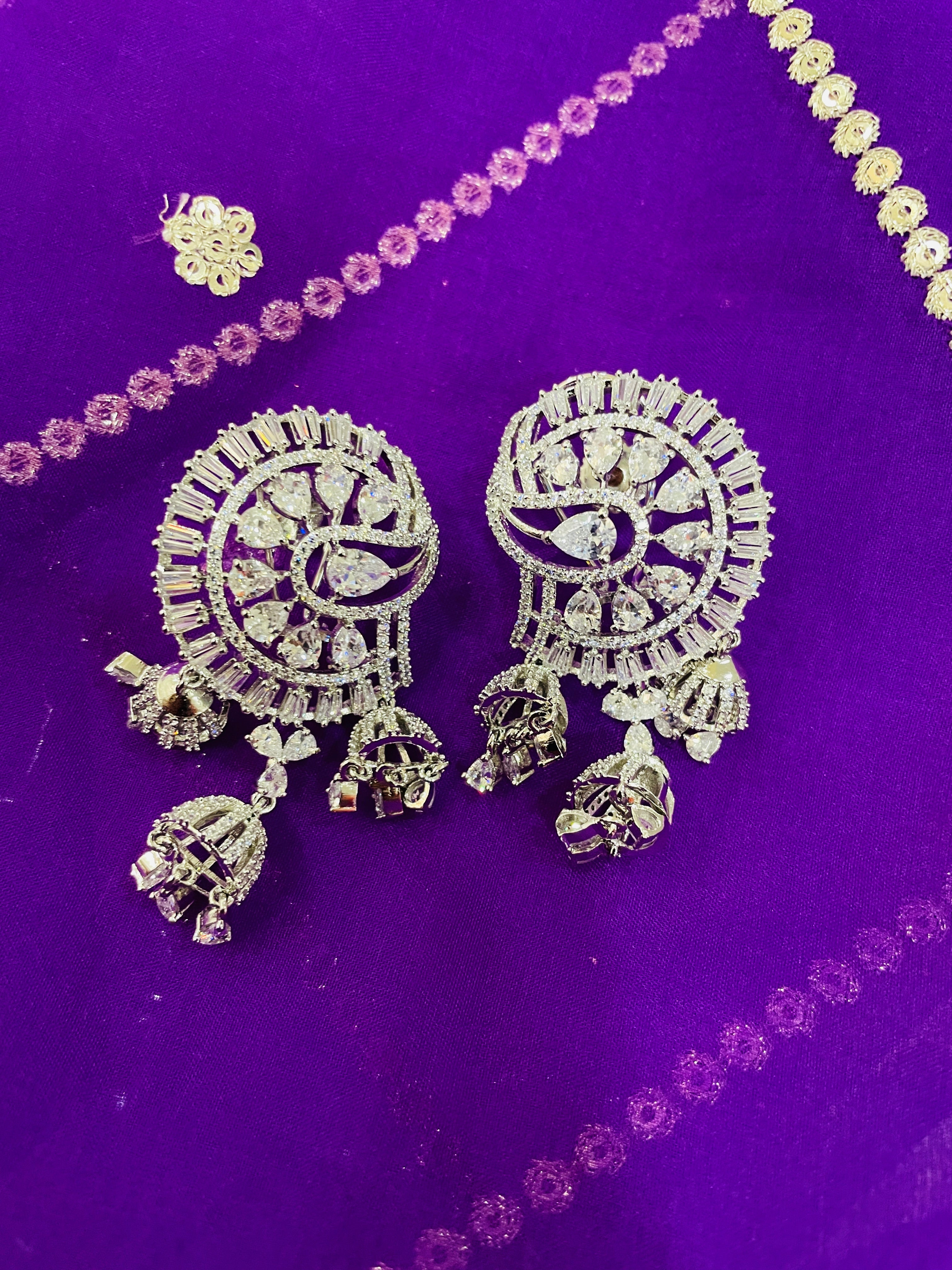 Make a stunning statement with these exquisite chandelier earrings that combine elegance with contemporary design. The earrings showcase a mesmerising arrangement of delicate pink quartz stones complemented by brilliant cubic zirconia in a sophisticated silver-plated setting. The intricate fan-shaped pattern features baguette-cut crystals along the edges, creating a dramatic cascade effect that catches and reflects light beautifully. These show-stopping pieces feature a secure fastening mechanism and dangle gracefully, making them perfect for special occasions, wedding ceremonies, or elegant evening events....